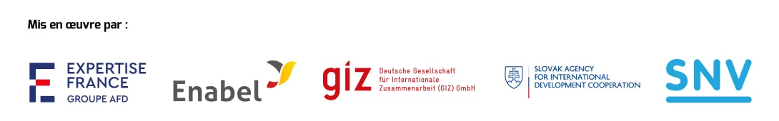 Cette initiative de l’Équipe Europe est financée par l’UE, la France, l’Allemagne et la Slovaquie. Elle est mise en œuvre par les agences Expertise France, Enabel (Belgique), GIZ (Allemagne), SAIDC SlovakAid (Slovaquie) et SNV (Pays Bas).